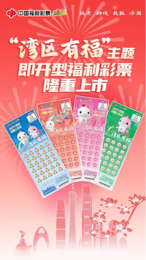 2025年12月,一款名为“湾区有福”的即开型福利彩票在广州首发上市,这是广州福彩为喜迎全国第十二届残疾人运动会暨第九届特殊奥林匹克运动会推出的主题彩票。票面上,木棉、紫荆、莲花共舞,广州塔与港珠澳大桥交相辉映,“喜洋洋”“乐融融”这对以中华白海豚为原型设计的吉祥物以灵动之姿诠释着残疾人顽强拼搏的体育精神,不仅生动传递了福彩宗旨文化与残特奥会精神理念,也让社会各界以“随手公益”的方式为残特奥会“增福添彩”。“湾区有福”主题彩票已在广东省内多个城市上市,筹集彩票公益金约2000万元。