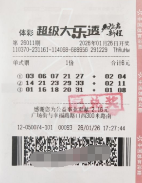 超级大乐透第26011期中奖号码“14、21、23、29、33+02、10”,当期全国中出3注基本投注一等奖,单注奖金1000万元,二等奖中出74注,单注奖金238777元,另外还有13注追加二等奖,每注多得奖金191021元。寿光幸运购彩者凭借一张6元单式票,中得当期基本投注二等奖1注,23.87万元收入囊中。票面3注号码中,第2注号码与一等奖一号之差擦肩而过,中得二等奖1注。
