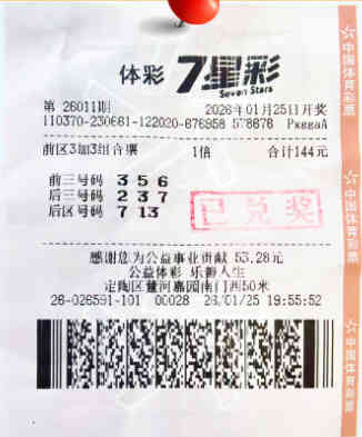 1月25日,中国体育彩票7星彩第26011期开奖,开奖号码为635273 + 13。当期全国仅中出1注一等奖,奖金高达500万元,这注幸运大奖花落山东菏泽。
