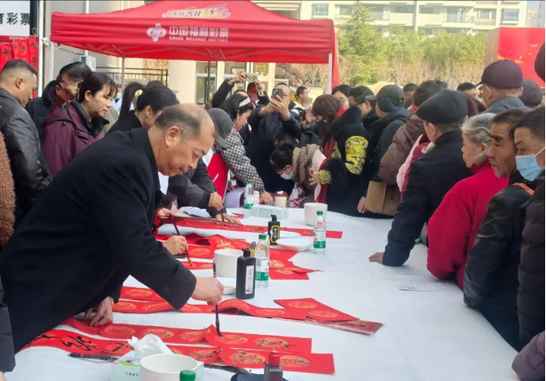 2026年新春将至,在武汉东湖高新区关东街韵湖社区,“荆楚银龄行动”新年迎新?福彩送福活动热闹启幕,十余位书法家与社区书法爱好者同台挥毫,红纸翻飞间,一副副寓意吉祥的春联、一个个饱满的福字新鲜出炉,送到居民手中。