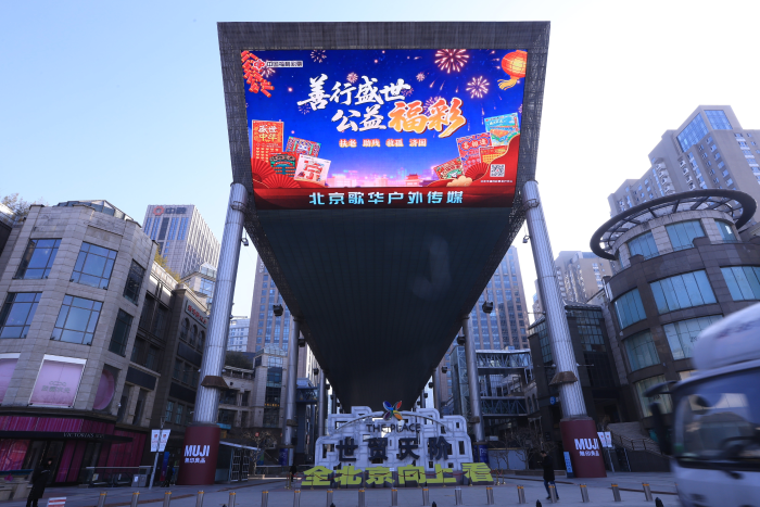 春节期间,北京福彩在全市近6000块楼宇电视及多块城市户外大屏持续开展公益广告展播。投放点位囊括世贸天阶、双井富力城、东直门来福士、酒仙桥电子城、工体春平广场、望京凯德Mall、西直门枫蓝国际等人流密集、消费活跃的商业地段。