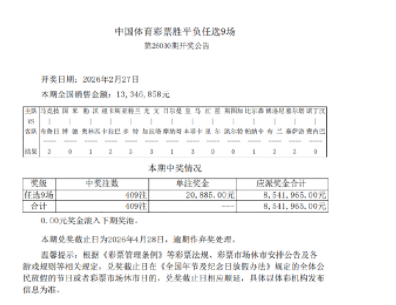 彩果方面,欧联杯赛场,里尔客场1-0击败贝红星,斯图加特0-1不敌凯尔特人爆7倍大冷,比尔森1-1战平帕纳辛纳科斯,博洛尼亚1-0力克布兰,塞尔塔1-0小胜塞萨洛尼基,诺丁汉1-2不敌费内巴切爆5倍冷门;欧冠赛场,大巴黎2-2战平摩纳哥打出6倍冷门赛果,亚特兰大、尤文、皇马顺利取胜。国米主场1-2不敌博德,爆出10倍冷负,附加赛两回合被对手双杀惨遭淘汰。其余3场比赛,勒沃库森与奥林匹亚克斯互交白卷、纽卡斯尔3-2击败卡拉巴赫、马竞4-1大胜布鲁日。
