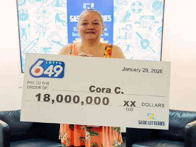 近日,加拿大649彩票爆出1800万加元(约合人民币9257万元)大奖,得主是来自萨斯喀彻温省55岁的科拉·卡斯伯特。