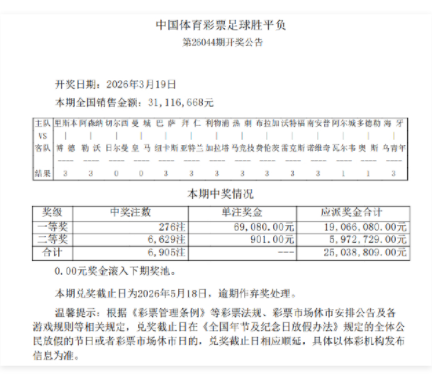 本期兑奖截止日为2026年5月18日,逾期作弃奖处理。