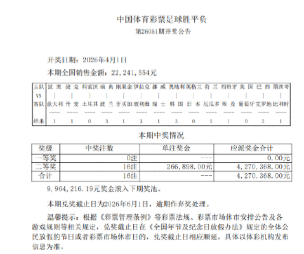 本期兑奖截止日为2026年6月1日,逾期作弃奖处理。