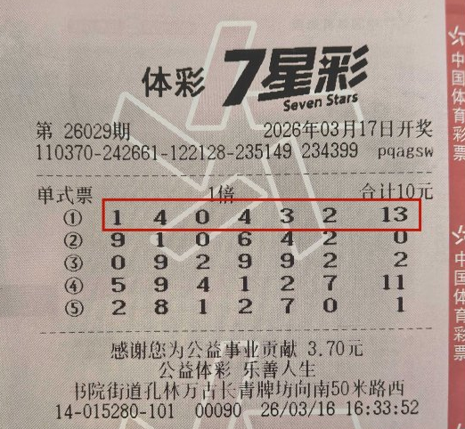 老宋此次旅行的目的地是山东。3月16日,当他驾车抵达曲阜时,决定前往三孔开启一场文化之旅。“孔林是我游览的最后一站,从那里出来天色已晚,我看到景区外有一家体彩投注站,便进去歇歇脚。”老宋回忆道,“我很多年前就买过体彩的7星彩,那天突然来了兴致,就随机选了5注号码。”