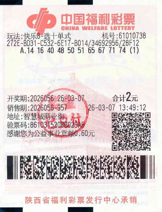 次日清晨,云女士刷朋友圈得知长安区有人中“选十中十”,核对后发现竟是自己。她告诉公公,公公起初还不信,看到票后才乐开了花。当晚,这注大奖就落在了云女士这张“免费”票上。