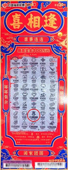 购彩“老手”试手气,,买整本刮刮乐刮中“喜相逢”100万