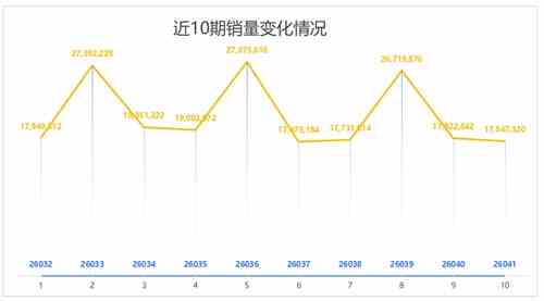 7星彩第26041期当期销量为17,547,320元。相比上一期(第26040期)销量减少375,522元,减幅达到2.10%。