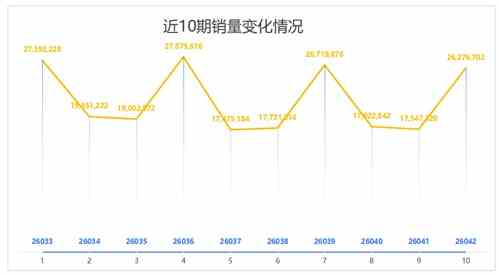 7星彩第26042期当期销量为26,276,702元。相比上一期(第26041期)销量增加8,729,382元,增幅达到49.75%。当期销量出现大幅增长,是时间节点、消费心理、开奖周期共同作用的结果。周五是工作日收尾、周末开启的节点,群众休闲意愿与消费热情显著提升,购彩自然成为衔接工作与休闲生活的轻松选择。同时,7星彩周二、周五、周日开奖,周二至周五间隔3天,购彩者的期待感得以充分积累,购彩意愿与单次购彩金额投入相应提高。加之周五社交场景丰富,购彩话题传播更广,进一步带动销量增长。