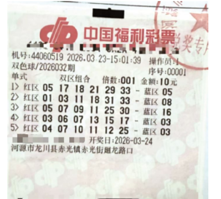 近日,中奖彩民王先生(化名)在家人陪同下前来河源市福彩中心办理兑奖手续。据王先生介绍,他是一位资深彩民。双色球第2026032期开奖前一天,他在河源市龙川县44060519福彩销售站点购买了这张双色球彩票。王先生表示,购彩是他日常生活中休闲娱乐的一种方式,也是参与公益、奉献爱心。