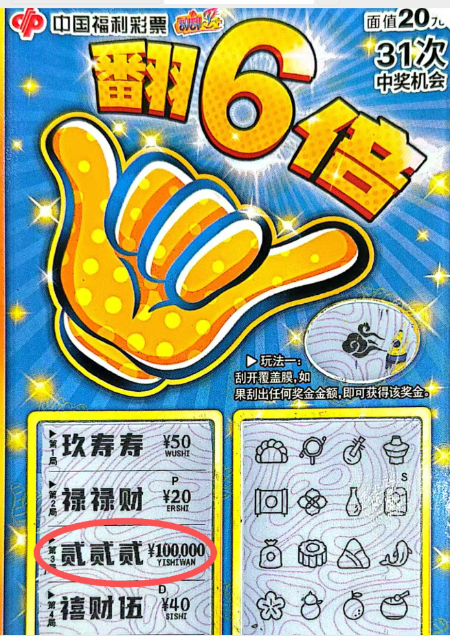 一张刮刮乐,既是随手公益,也是一份期待。 幸运不期而遇,惊喜时刻可能发生。下一个“翻6倍”的幸运儿,也许就是您。