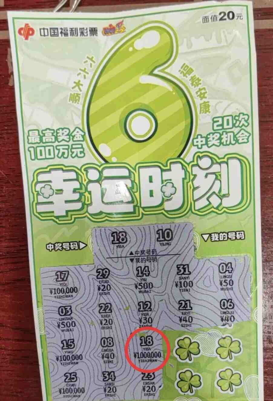 一彩民20元买刮刮乐,喜中一等奖100万元!