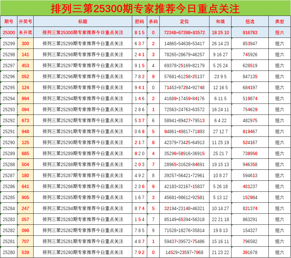 下一篇:排列三25301期胆码预测分析 专家推荐692