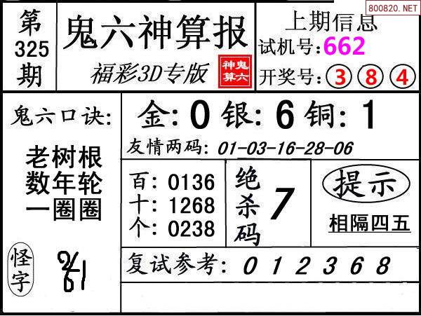 下一篇:24326期: 福彩3D鬼六神算图