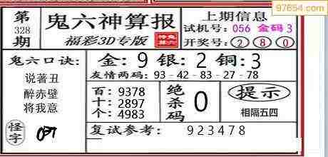 下一篇:24329期: 福彩3D鬼六神算图