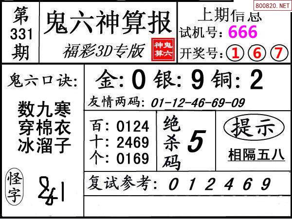 上一篇:24330期: 福彩3D鬼六神算图