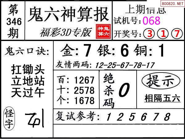 上一篇:24345期: 福彩3D鬼六神算图