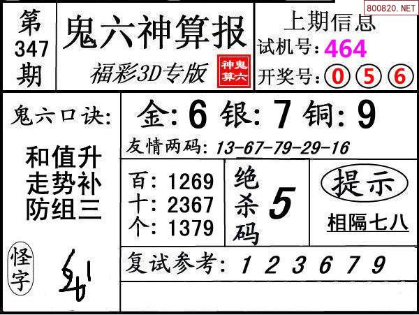 上一篇:24346期: 福彩3D鬼六神算图