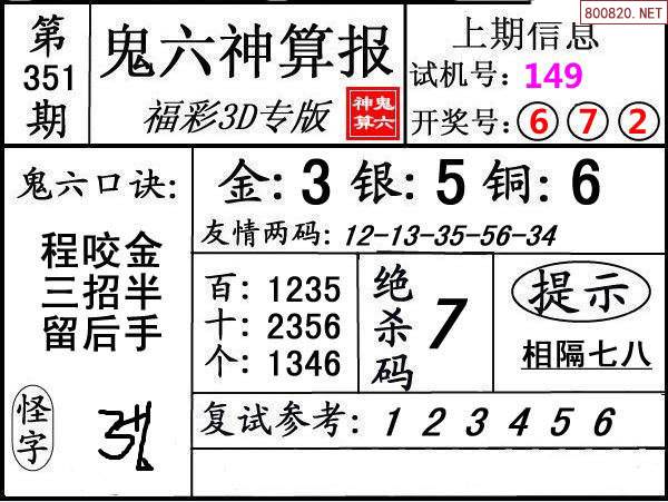 上一篇:24350期: 福彩3D鬼六神算图