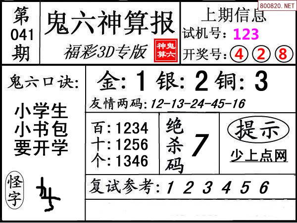 下一篇:25042期: 福彩3D鬼六神算图