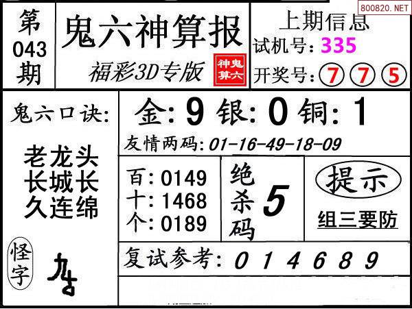 下一篇:25044期: 福彩3D鬼六神算图