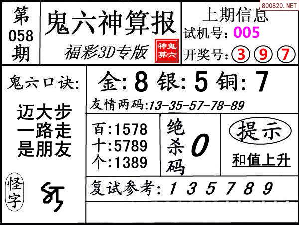 下一篇:25059期: 福彩3D鬼六神算图