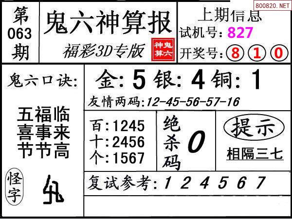 下一篇:25064期: 福彩3D鬼六神算图