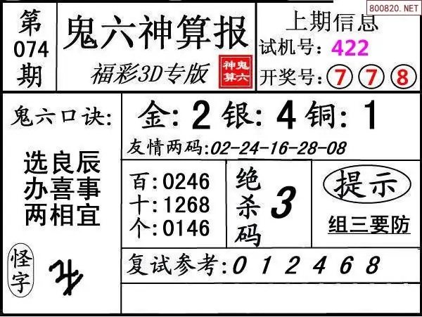 下一篇:25075期: 福彩3D鬼六神算图