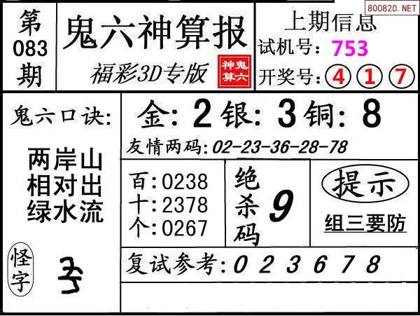 下一篇:25084期: 福彩3D鬼六神算图