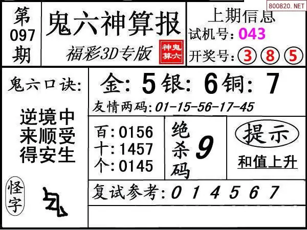 下一篇:25098期: 福彩3D鬼六神算图