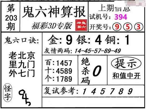 下一篇:25204期: 福彩3D鬼六神算图
