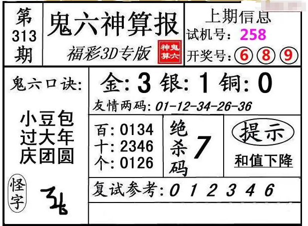 下一篇:25314期: 福彩3D鬼六神算图