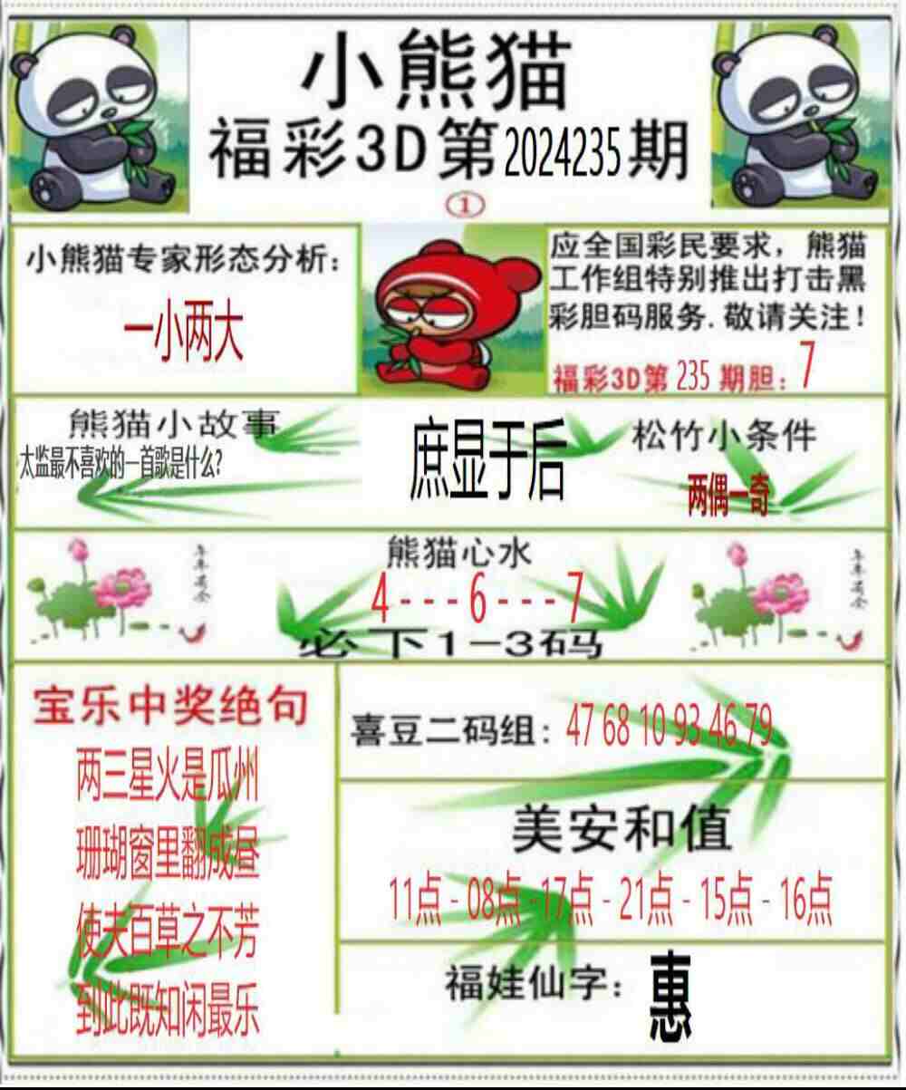 下一篇:24236期: 福彩3D丹东全图分析