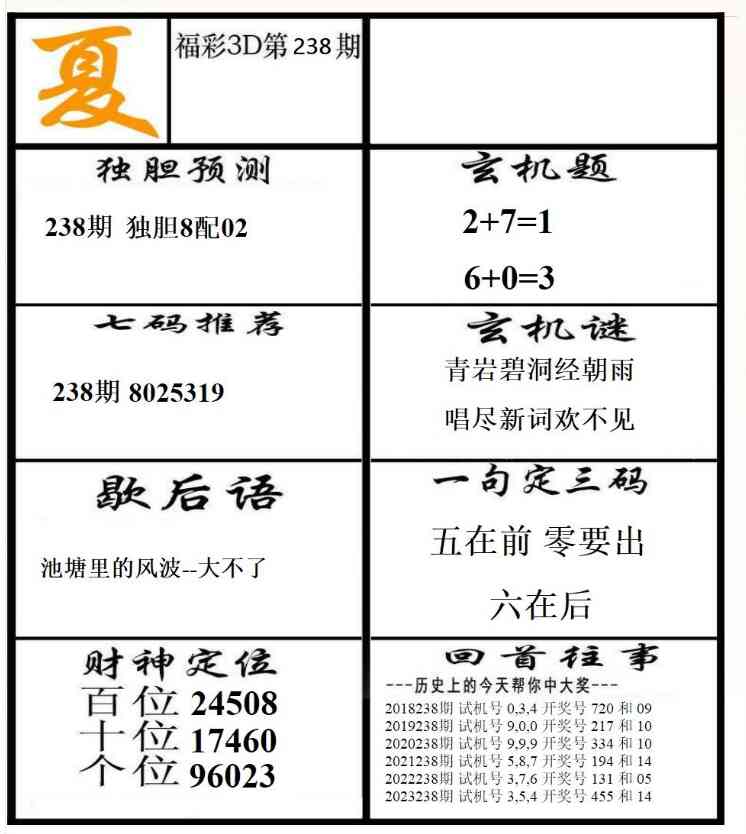 上一篇:24238期: 福彩3D丹东全图分析