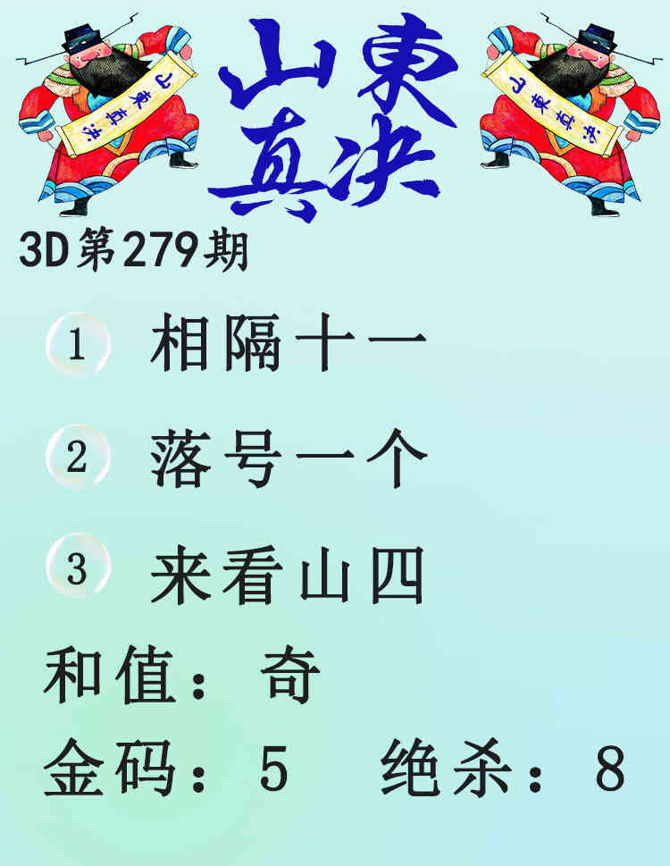 上一篇:24279期: 福彩3D财神精选胆码杀码图