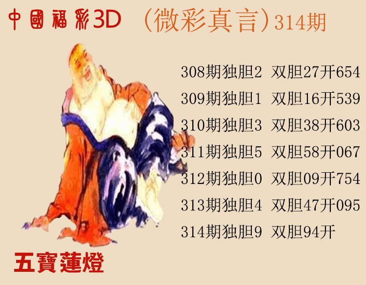 上一篇:24314期: 福彩3D财神精选胆码杀码图