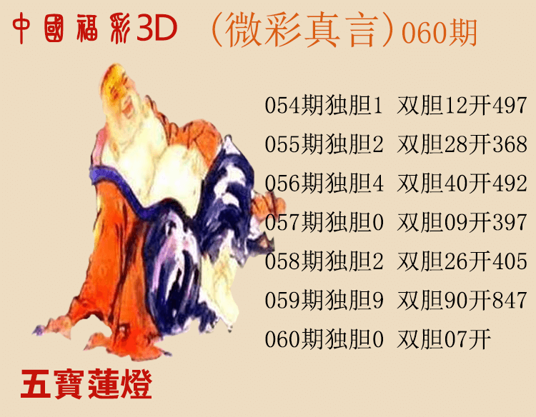 上一篇:25060期: 福彩3D财神精选胆码杀码图
