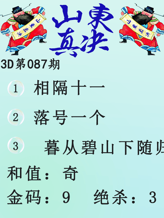下一篇:25087期: 福彩3D财神精选胆码杀码图