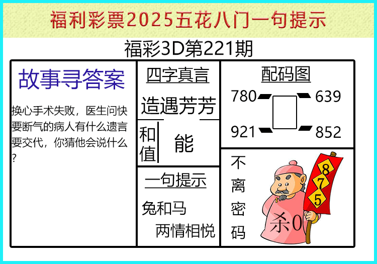 上一篇:25221期: 福彩3D财神精选胆码杀码图