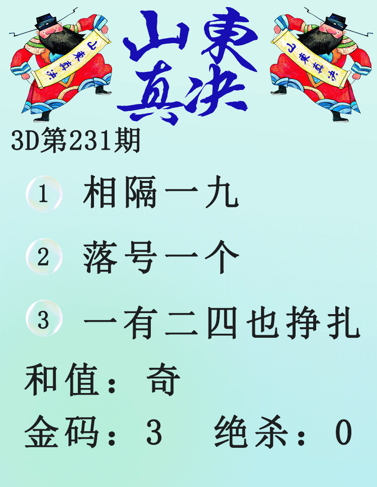 下一篇:25231期: 福彩3D财神精选胆码杀码