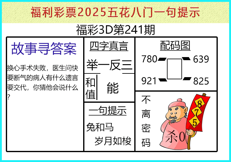 上一篇:25241期: 福彩3D财神精选胆码杀码