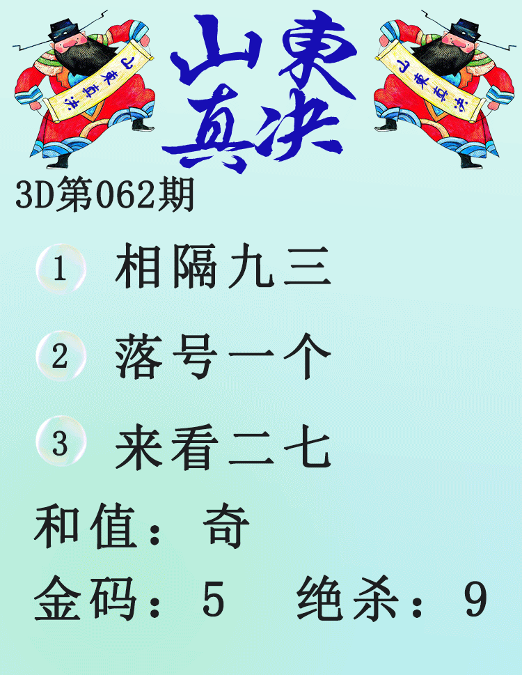 下一篇:26062期: 福彩3D财神精选胆码杀码