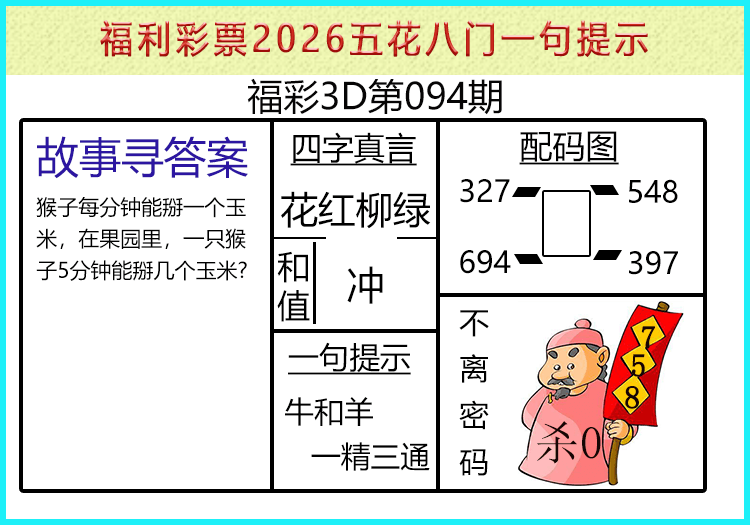上一篇:26094期: 福彩3D财神精选胆码杀码