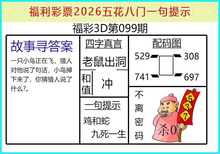 上一篇:26099期: 福彩3D财神精选胆码杀码
