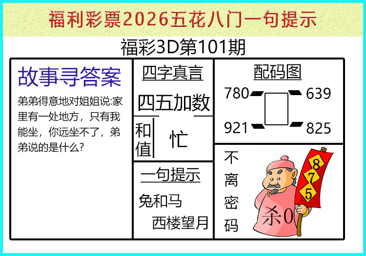 上一篇:26101期: 福彩3D财神精选胆码杀码