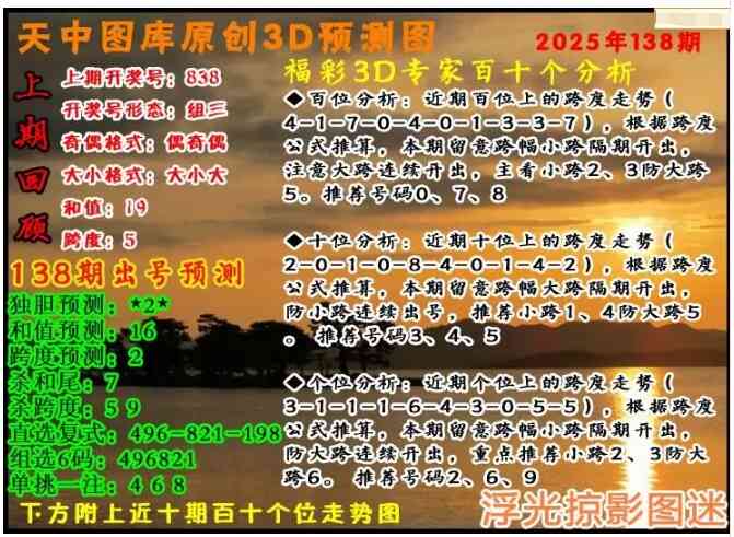 上一篇:福彩3D25137期天中全套预测分析图