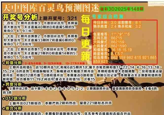 上一篇:福彩3D25147期天中全套预测分析图