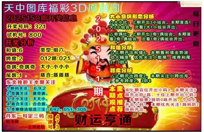上一篇:福彩3D25150期天中全套预测分析图