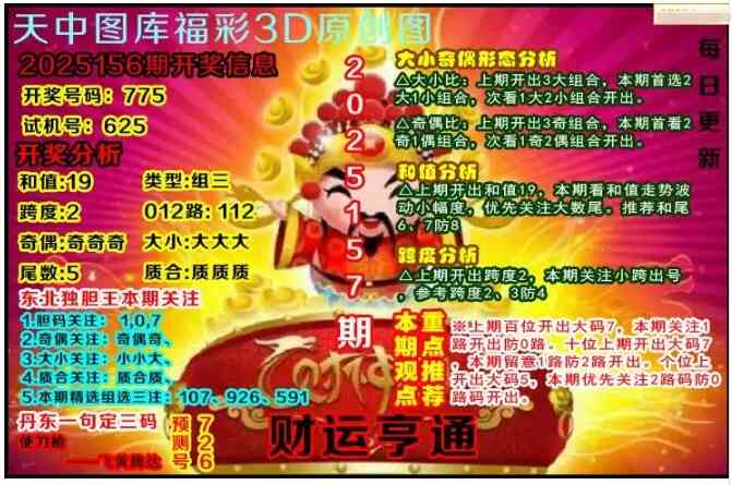 上一篇:福彩3D25156期天中全套预测分析图